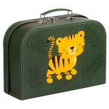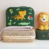 Et sødt sæt med to børnekufferter med tiger- og junglemotiv, som vil glæde små opdagelsesrejsende. De tilbyder robust pap med polyesterstikninger, et metalgreb og en lås samt to forskellige størrelser til praktisk sortering af legetøj, skatte og kreative materialer.