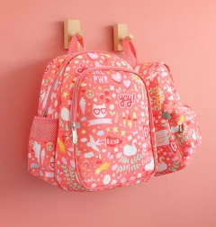 En let og rummelig børnerygsæk fra A Little Lovely Company, ideel til både børnehave og udflugter. Den har en hovedlomme med masser af plads, en isoleret frontlomme til madpakke, to sidelommer til drikkeflaske og polstrede, justerbare stropper med brystrem for komfortabel og sikker bæring.