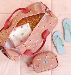 Let og robust børne-rejsetaske med sommerfuglemotiv, der byder på en rumlig hovedsektion, praktiske lommer og en aftagelig skulderrem. Ideel til fritidsaktiviteter, udflugter og som håndbagage i fly.