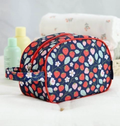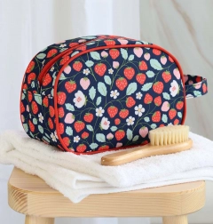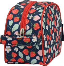 En stilfuld toilettaske med jordbærmotiv, ideel til udflugter, lejre og ferier. Den har et rummeligt rum til shampoo, sæbe, tandbørste og andre småting, en praktisk hank for nem transport samt et robust design til daglig brug.