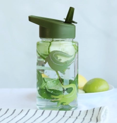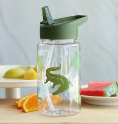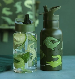 Denne stilfulde drikkeflaske med krokodillemotiv gør det nemmere for børn at holde en god drikkerutine. Takket være det tætsluttende låg og sugerør er det behageligt at drikke, og flasken forbliver uden at lække. De gennemsigtige sider hjælper med at holde øje med væskemængden, og de kompakte mål passer i enhver børnerygsæk.