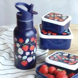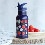 Stilren børneflaske fra A Little Lovely Company med jordbærmotiv, der byder på dobbeltvægget konstruktion i rustfrit stål for fremragende isolering, praktisk tud med sugerør til kolde drikke og et kompakt 350 ml volumen – ideel til børnehave, skole og udflugter.