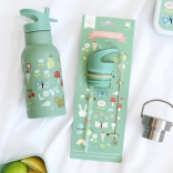 Praktisk sæt fra A Little Lovely Company til en 350 ml rustfri stålflaske indeholder et låg, et sugerør og en rensebørste. Det stilfulde motiv med jordbær vil glæde børn, nem udskiftning forlænger flaskens levetid, og et rent sugerør sikrer hygiejnisk drikning.