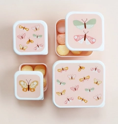 Sættet er designet til overskuelig og hygiejnisk pakning af mad. De enkelte bokse har det samme legende sommerfuglemotiv og kan sættes ind i hinanden, så de sparer plads derhjemme. De er perfekte til frugt, småkager, sandwich og små snacks.