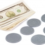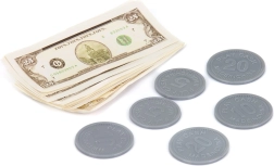 Stativ med donuts, mønter, sedler og andre accessories for en komplet “konditori”-oplevelse.