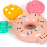 Det sjove legesæt butik med donuts fra mærket CHIPOLINO forvandler børneværelset til et lille konditori. Børn vil nyde interaktiv leg med lys og lyde, træne finmotorik, kommunikation og rollerne som ekspedient og kunde. Sættet indeholder 34 stk. tilbehør, inklusive stativ med donuts, mønter og sedler, og er perfekt til både solo- og fællesleg.
