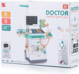 Dette legesæt er ideelt for børn, der vil blive læger. Indeholder 26 stykker tilbehør inklusive en vogn med hylder, et oplyst røntgenpanel og andre medicinske tilbehør. Børn kan glæde sig over interaktiv leg med lyde og lys.