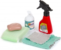 Sættet indeholder alt, hvad barnet behøver til rengøring – fra kost og fejebakke med børste over klude og spray til advarselsskilt. Vognens mål 71 × 31 × 33,5 cm sikrer nem styring selv for mindre børn. Legetøjet er fremstillet i overensstemmelse med europæiske sikkerhedsstandarder.