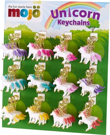 Det praktiske salgsdisplay indeholder 72 nøgleringe med enhjørning, som begejstrer med deres legende design. Perfekte som små gaver, præmier til konkurrencer eller stilfulde accessories til nøgler, rygsække og penalhuse.