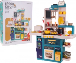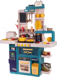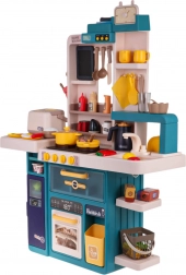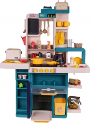Det rummelige køkken i kvalitetsplast begejstrer børn med levende farver og mange interaktive elementer. Drejeknapperne aktiverer lyde af madlavning og stegning og tænder samtidig de bagbelyste blus. I vasken løber der rigtigt vand, og fra pande eller gryde frigives blid, sikker damp, som forstærker den realistiske legeoplevelse.