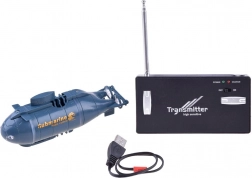 Pålidelig frekvens på 49 MHz for stabil rækkevidde. Senderen fungerer også som oplader – tilslut blot kablet til ubådens port.