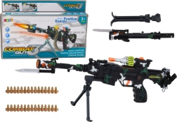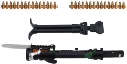Riflen kan monteres på et stativ, der er en del af sættet, og nyde sjov ved skydning med laserpejling.