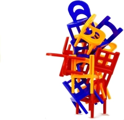 .Hver spiller stabler på skift en stol oven på en anden, så det stablede tårn ikke falder sammen. Stable de farvede stole oven på hinanden og byg det størst mulige tårn. Den, der ikke formår at holde pyramiden stående og stabil, taber. Man må ikke røre ved eller flytte allerede placerede stole. Tårnet kan bygges i fællesskab eller alene.