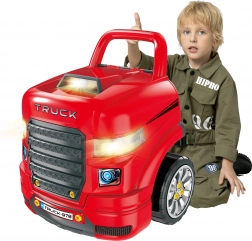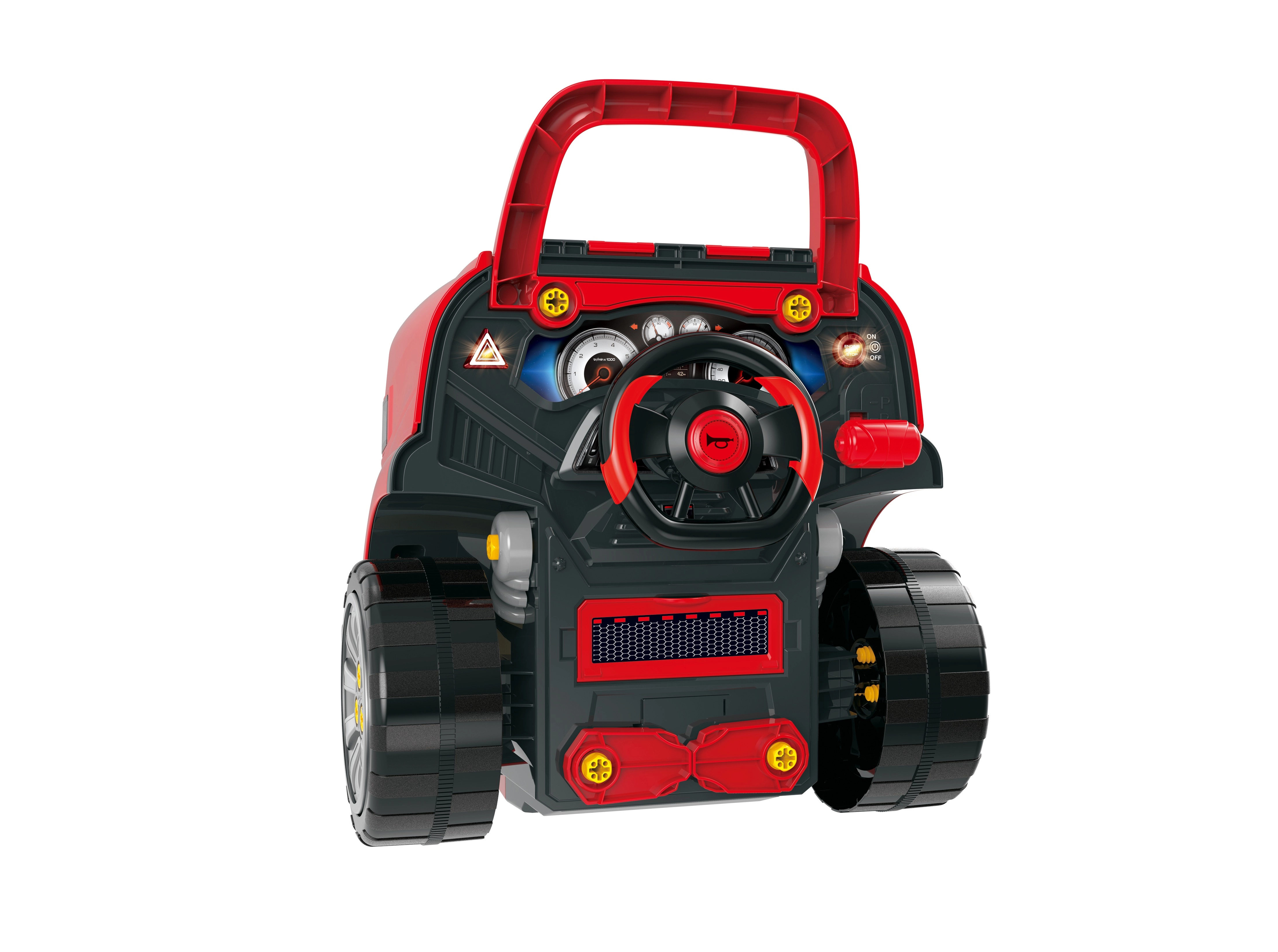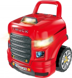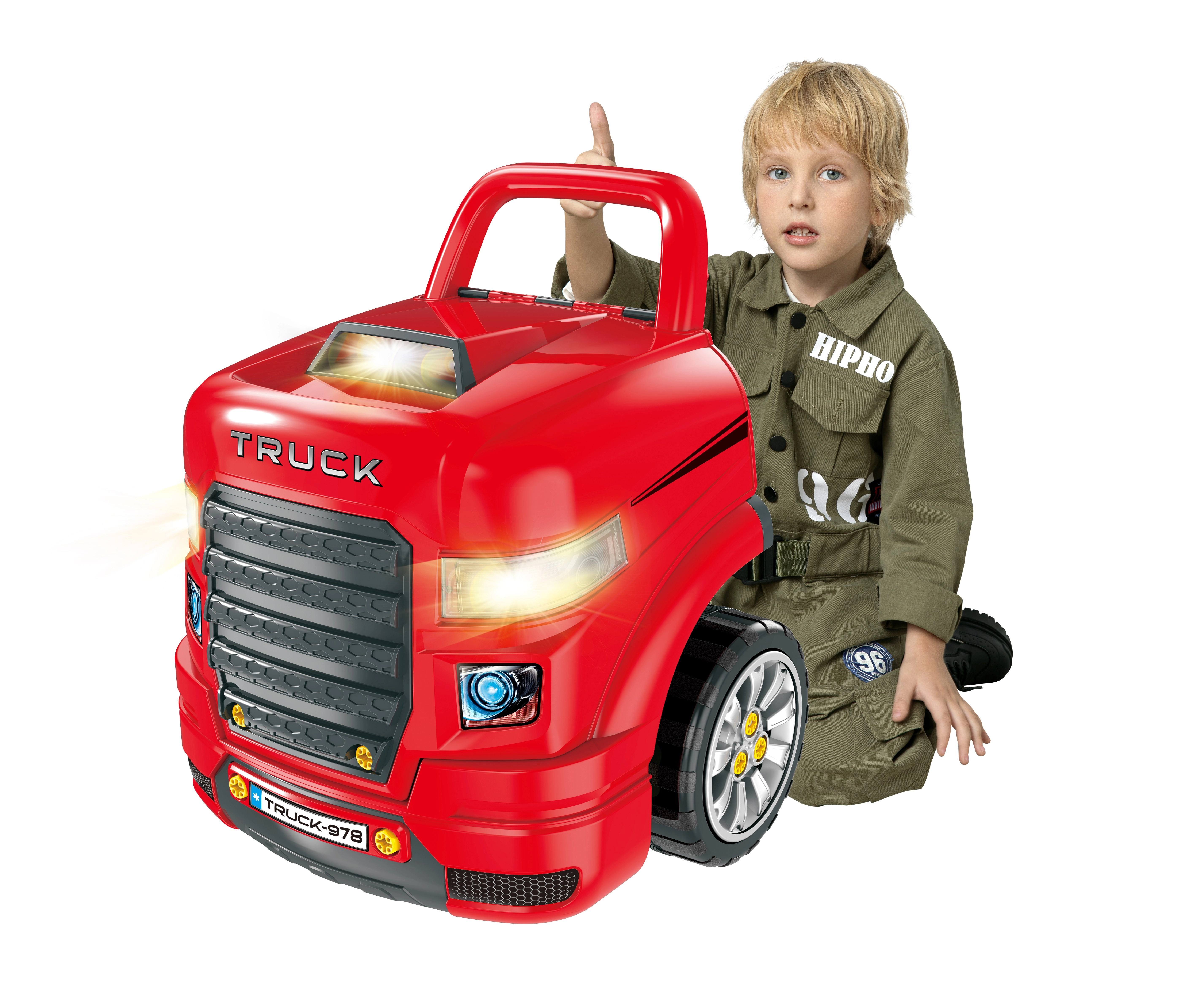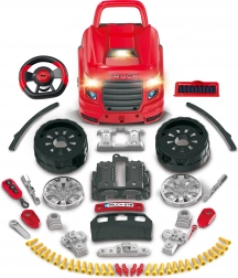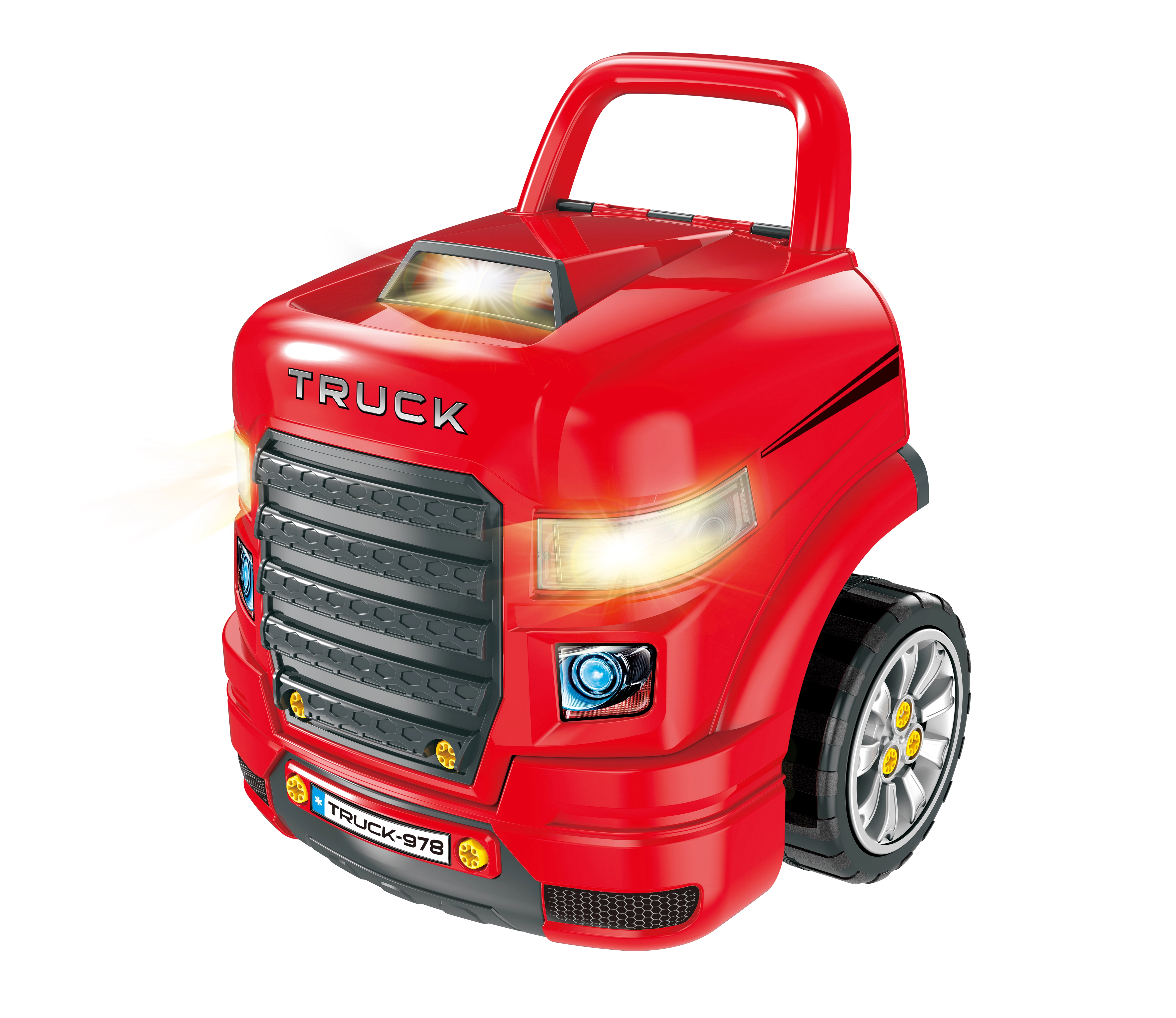 Opdag en interaktiv legeting til små mekanikere: en skruemotor til lastbil med fjernbetjening, mål 40 × 39 × 47 cm. Sættet indeholder 61 dele, lys- og lydeffekter, lysende forlygter og realistiske elementer som gearknob, horn og startknap. Der medfølger også nøgler med knapper til oplåsning og låsning.