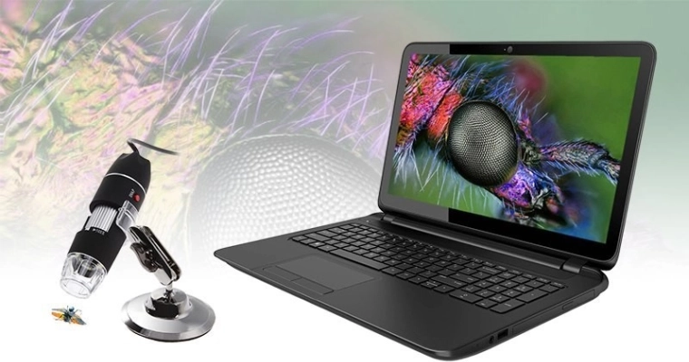 Pakken indeholder professionel software til computer, som gør det muligt at tage fotos og optage video. Takket være de kompakte mål er mikroskopet også ideelt til rejser med bærbar computer.