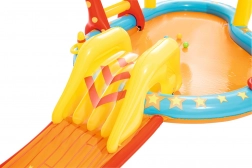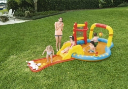 BESTWAYs vandlegecenter er det ideelle valg til familiehaven. Den brede legeflade med lavt bassin (kapacitet ca. 314 l) og en aftagelig rutsjebane skaber et sikkert miljø for mindre børn. Den forfriskende vandspreder gør varme dage mere behagelige, mens den bløde oppustelige bund øger komforten under legen.