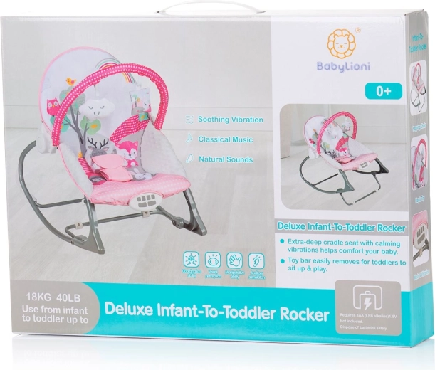 En komfortabel gyngestol til spædbørn og tumlinger, der kombinerer beroligende vibrationer, behagelige melodier og en underholdende legetøjsbøjle. Med to ryglænspositioner, sikre 3-punkts seler og brug op til 18 kg er den ideel til leg, afslapning og lur.
