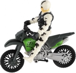 Detaljeret plastmotorcykel med funktionsdygtige hjul er ideel til både forfølgelse og udforskning af terræn.