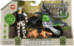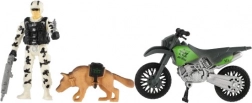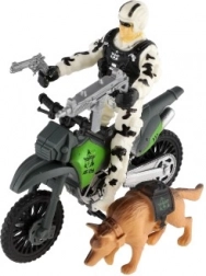 - Komplet sæt til leg med det samme: motorcykel, soldat, hund og tilbehør