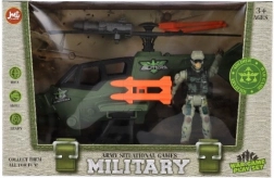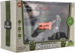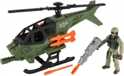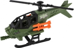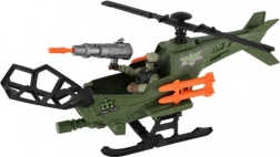 Dette realistiske sæt bringer børn ind i en spændende verden af luftmissioner. Den grønne helikopter med sorte rotorer og orange missiler, den detaljerede kabine og den bevægelige soldatfigur understøtter fantasi, finmotorik og teamwork.