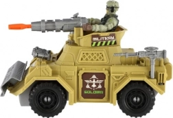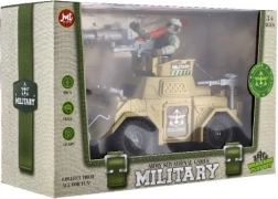 Robust plastbil med taktisk tilbehør, friløbshjul og detaljeret overflade for autentisk militæraktion.
