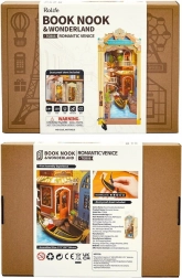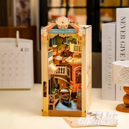 Oplev Venedigs romantik i din bogreol. Bogstøtten Romantic Venice forvandler hylden til en malerisk gyde med gondol, masker og café. Transparent plast skaber en imponerende vandeffekt, som sammen med LED-belysning med touch-kontakt giver scenen aftenstemning. Delene passer præcist og samles uden lim, så du kan bygge bekvemt og rent.