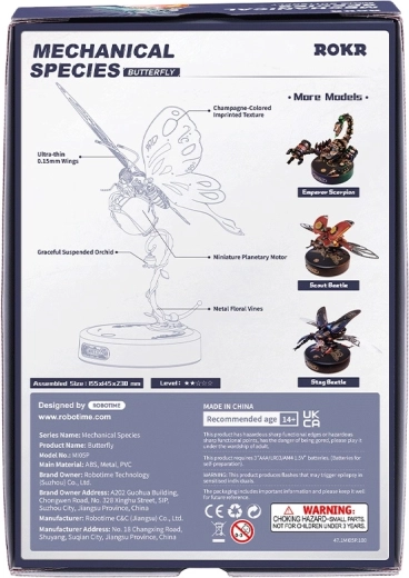 Dyk ned i en verden af kreativitet og natur med denne smukke mekaniske 3D-sommerfuglemodel. Den detaljerede sommerfugl imponerer med sine bevægelser og den subtile lyseffekt. Sommerfuglen har bioniske vinger, der bevæger sig naturtro, og den blomstrende base med rosemotiv oplyses af et gyldent lys.