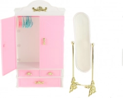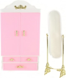 Inkluder garderobeskabet og spejlet Glorie i dine børns lege, som kommer med et overskueligt design og funktionalitet til deres dukker. Børnene kan nyde at opbevare tøjet med passende omsorg takket være praktiske bøjler, mens spejlet tilføjer et strejf af elegance til deres legescener.