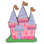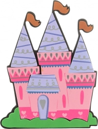 Farverigt skum-udskåret slot med tre tårne bringer en magisk atmosfære til rummet.