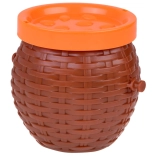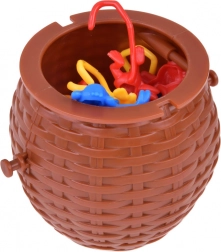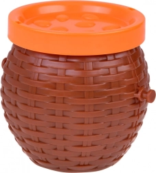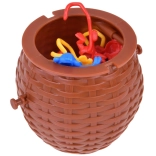 Den plastiske kurv med låg er fremragende ikke kun til spillet, men også som opbevaring for aberne efter spillet er slut.