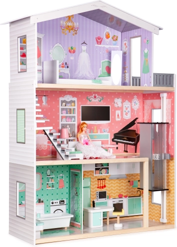 Stor trækdukkehus med elevator ECOTOYS