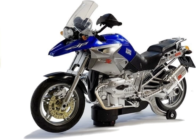 Batteridrevet børnemotorcykel 1:8 i blå med lys og musik. Til børn 3+, udvikler koordination. 4× AA, CE-certificeret, i overensstemmelse med EN 71.