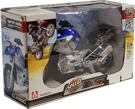 En stilfuld batteridrevet børnemotorcykel i blå farve vil glæde små racerkørere. Den byder på lys- og lydeffekter, realistisk skala 1:8 og understøtter udvikling af koordination og fingerfærdighed. Ideel til børn fra 3 år og som gave i vinduesæske. Strømforsyning 4× AA (medfølger ikke).