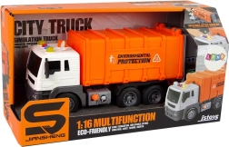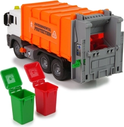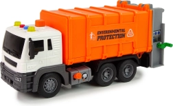 Oplev et sjovt og lærerigt legetøj, der fremmer et ansvarligt forhold til naturen. Den orange skraldebil er detaljeret udført, har et funktionelt lad, og med en enkel mekanisme kan børn tømme indholdet fra spandene i containeren. Lydeffekter øger realismen, og friktionsdrevet sikrer kvik kørsel uden batterier i hjulene.
