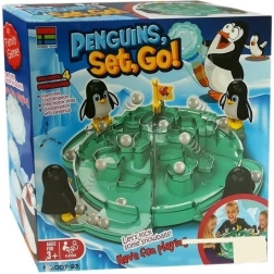 Fire pingvinfigurer med store øjne giver spillet charme og overblik – hver spiller har sin egen helt.