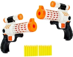 Sættet indeholder to pistoler og skumpatroner med sugekopper for sikker sjov. Børn kan lege som små krigere og nyde timers underholdning.