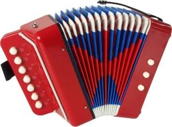 Denne musikalske harmonika er et fantastisk legetøj for børn, der elsker musik og sjov. Instrumentet ser ud som et rigtigt. Det udvikler børns motorik og hørelse perfekt og forbereder barnet på at spille på et ægte instrument. Princippet for harmonikaen er det samme som på et rigtigt instrument: for at frembringe lyd skal harmonikaen trækkes ud og trykkes sammen; harmonikaen har bas- og melodiknapper samt et håndtag.