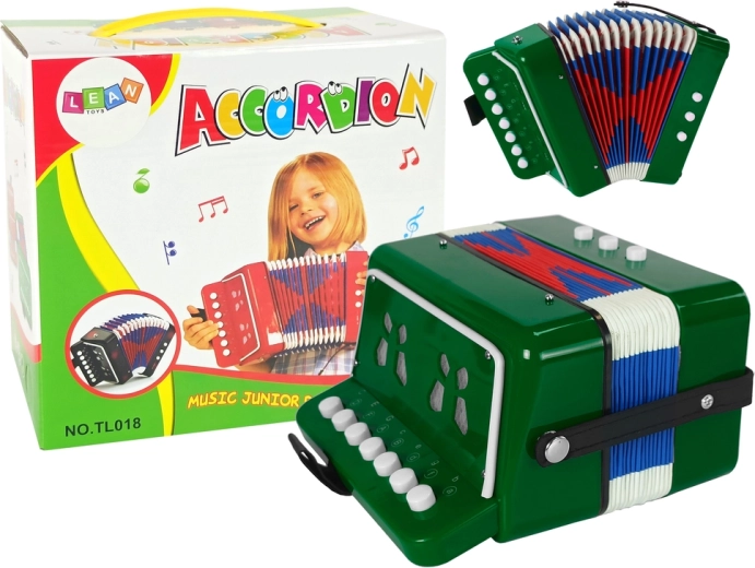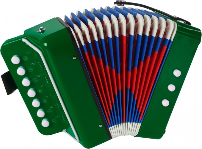 Denne musikalske harmonika er et fantastisk legetøj til børn, der elsker musik og sjov. Instrumentet ligner et rigtigt og hjælper med at udvikle barnets motorik og hørelse, samtidig med at det forbereder barnet på at spille på et rigtigt instrument. Principperne er de samme som for en rigtig harmonika: for at frembringe lyd skal bælgene trækkes ud og trykkes sammen. Harmonikaen har bas- og melodiknapper samt en håndrem.