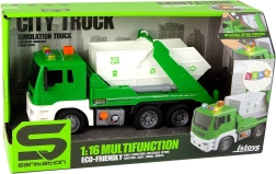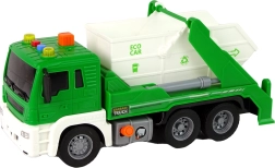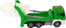 Dette detaljerede grønne skraldesæt vil begejstre hvert barn, der beundrer rengøringstjenesternes køretøjer. Friktionsdrev på bagakslen sikrer en kvik kørsel – skub blot, så kører bilen. Åbnbar container gør det muligt at tømme affald det rette sted, og med en “pumpe” kan hele ladcontaineren vippes bagud.