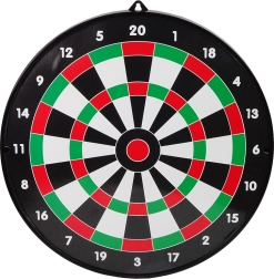 I pakken finder du en dartskive og 6 pile i to farver for let holdsortering – hæng op og spil med det samme.