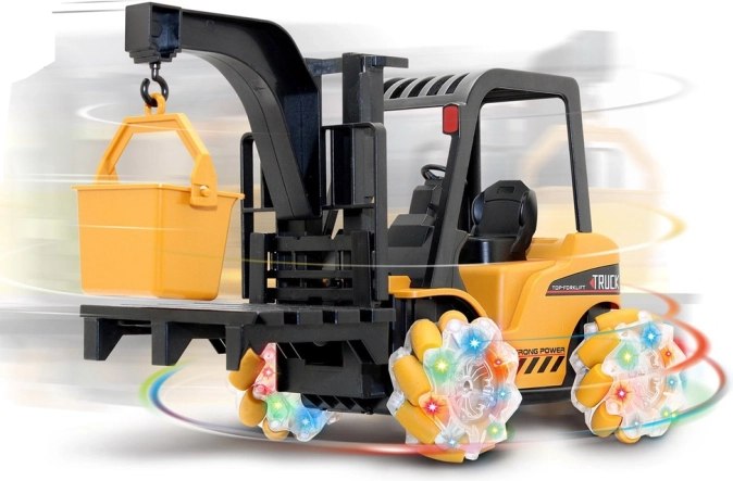 Styr løft og sænkning af palle med ét tryk, nyd farvede LED i hjulene, musik under kørsel og advarselslyd for en endnu mere realistisk leg. Det integrerede 3,7 V / 1200 mAh batteri giver lang driftstid og nem opladning.