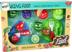 Giv børnene glæden ved at lege kok med dette farverige og praktiske sæt. Indeholder realistisk udseende frugt, som kan deles med den medfølgende kniv. Ideelt til træning af finmotorik og støtte af fantasien.