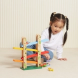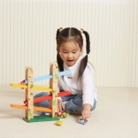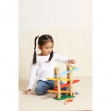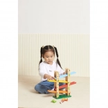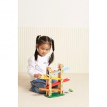 Træ rutsjebanebanen for dyr Jungle Slider fra mærket VIGA er designet til både at underholde og uddanne børn. Takket være den høje kvalitet og de farverige komponenter giver dette legetøj fangende legeoplevelser. Dyrene kan køre ned ad fire niveauer af rampen, hvilket udvikler koordination og finmotorik.