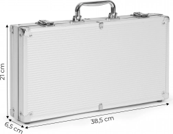 Du får en komplet samling af alle nødvendige elementer til at spille poker og blackjack, alt pænt arrangeret i en bærbar kuffert.