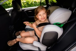 Til voksende børn har sædet 9 positioner for justering af nakkestøtten med nem enhåndsbetjening. Det brede sæde og det åndbare netbetræk forbedrer luftcirkulationen og komforten på længere ture. Betrækket kan nemt tages af og vaskes ved 30 °C.
