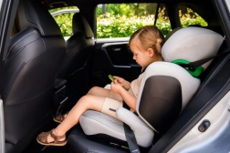 Forældre vil sætte pris på den synlige indikator for korrekt fastgørelse, det komfortable og brede sæde samt mesh-betrækket for bedre temperaturregulering. Betrækket kan nemt tages af og vaskes ved 30 °C. Den grønne føring hjælper med korrekt placering af sikkerhedsselen, hvilket minimerer risikoen for forkert montering.