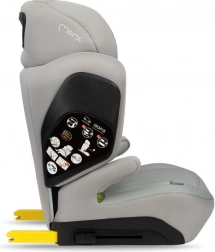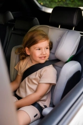 MoMi MEI er en moderne autostol i kategorien 100–150 cm, som kombinerer nem installation med ISOFIX og maksimal beskyttelse takket være forstærket sidebeskyttelse og en trelags, dyb nakkestøtte. Med 9 justeringstrin vokser den med barnet og holder hoved og nakke i en sikker position selv på længere ture.