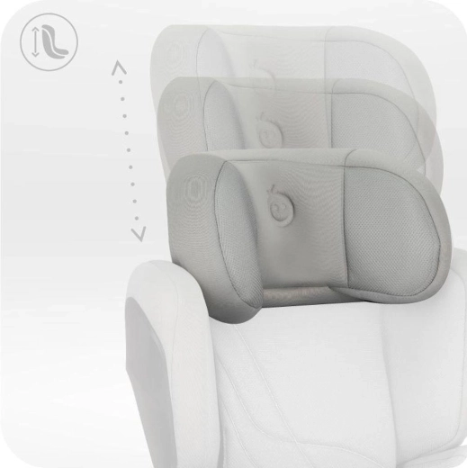 Dyb, blød og højdejusterbar nakkestøtte i 9 trin beskytter hoved og nakke, absorberer stødenergi og vokser sammen med barnet.