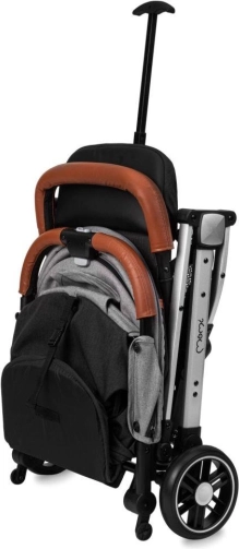 Foldes på få øjeblikke til et kompakt format, der kan stå selv. Med det udtrækkelige håndtag kan du trække den sammenfoldede klapvogn som en kuffert.