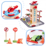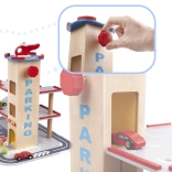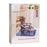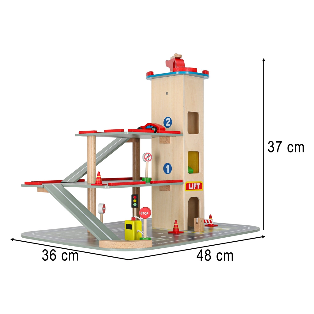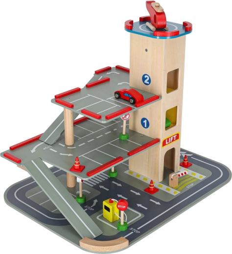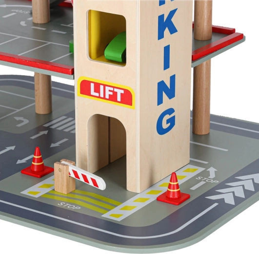 Parkeringshuset er yderst robust takket være sin bearbejdning, og de enkelte dele tilbyder en detaljeret finish, der er behagelig at røre ved. Byggesættet giver to muligheder - opbygning af selve parkeringshuset og en efterfølgende bilbane.